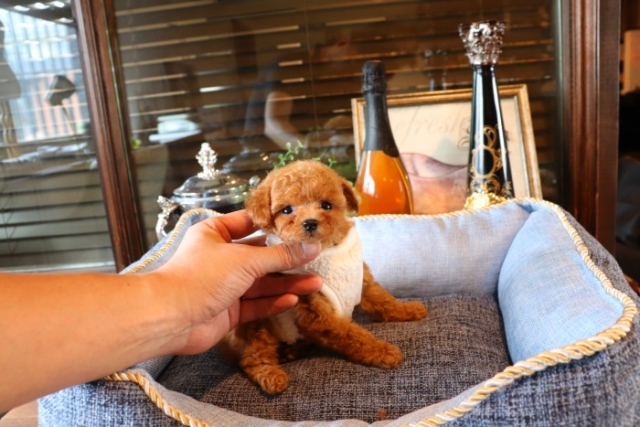 | コメント | 父犬1.6㎏ 母2.5㎏ アプリコットの女の子の紹介になります 予想サイズタイニーサイズ(2キロ台) 大人しい性格の甘えん坊な女の子♥ お兄ちゃんより少し小さく顔が小さくもしかしたら ティーサイズになるかもしれませんがそれはラッキーだと 思ってもらえればうれしいです♪ お子様の小さな家庭でも安心してワンちゃんライフを楽しめることでしょう 既に留守番、夜鳴きのしつけ、ケージ内のトイレはしつけてありますので 飼われた後も自分たちのお時間を邪魔せずこれまで通りの生活が可能でございます 耳の小ささ、肉球の小ささ、生後での体重、縦、横のサイズ、両親犬での判断となります ぜひ、良い子をお迎えくださいませ 欧米のブリーディング同様、親や兄弟と社会期を過ごさせることで 人間と暮らした時にスムーズに暮らせるようにしております。 親犬達も家族として朝7時からドックランで遊び、全室冷暖房完備の部屋で過ごし、専門のスタッフや専門学校の方々と協力し合いながら 衛生管理に努めております。 犬舎の特徴としましては、東京や神奈川近郊の為マンションのお客様が8割を占めます。その為小さな1キロから2.8キロまでに収まるように、 母犬を2.8キロまでと決めてブリーディングをしている為、後で極端に大きくなる子はいません。 瞳の丸く大きなところやマズル(鼻先)が短いもの特徴で、父犬、母犬、全て私が全国の可愛いトイプードルを一頭、一頭厳選して親犬としてブリーディングした子犬のみを掲載しております。 こだわりとしては、お客様がお迎えされた後、その子がTV出演、雑誌やカレンダーのモデルとして活躍の場が増え我が家を忘れないでいてもらいたい為、 本気でこだわりを持って常にトイプードルを飼うなら此処だと皆様全員に思われる犬舎でありたいと思います。 ありがたいことに今では、雑誌やTV出演、カレンダーなど多くの出身トイプードルちゃんたちが可愛く撮影されお客様からも喜びの声を頂いております |