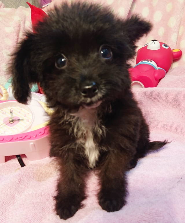 | コメント | お父さん・・ヨークシャーテリア お母さん・・プードル まん丸なくりくりお目目が 可愛い男の子です 毛質はストレートに近くさらさらしています 抜け毛はほとんど気になりません 胸と顎に有る白い毛が可愛いポイントです 比較的おとなしめな性格で甘えっ子です 今は兄妹でコロコロ仲良く遊んだり喧嘩を してみたり色々と勉強中の様です 大人になって3kg前後の可愛いサイズの 仕上がり予想です 健康診断、1回目のワクチン済みました 生涯家族の一員として可愛がって 下さる方を希望致します |