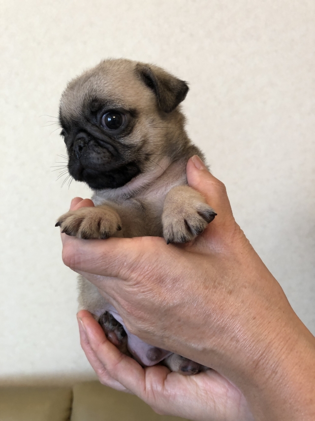 パグの飼育歴は30年以上になります。今年親の代から買っていた 黒パグを亡くしてから家を埋め尽くしているパググッズを見るたびに いつか新しい仔を迎えたいと思うようになりました。 北関東でブリーダーさんを探しているうちに木村様を知り、見学、購入の運びとなりました。 このたび性格も大変おおらかな素晴らしい仔犬をお譲りいただき大変感謝しております。 (茨城県 男性)