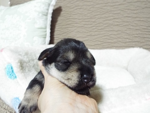 | コメント | 母親・・・ブラック&シルバ-・小ぶり 父親・・・ソルト&ペッパ- 目が開いたばかりなので、まだまだつぶらな瞳ですが、 成長と共に大きく可愛くなってきます。 ママのオッパイをいっぱい飲んで、元気に育っています。 生後45日頃に初回ワクチン接種(5種)、健康診断、検便など 獣医で済ませてからのお渡しになります。 仔犬代金には、全ての費用込みのお値段です。 航空便でのお渡しは、別途になります。 今なら血統書に呼び名をお付け出来ます。 見学大歓迎! お気軽にお問合せ下さい。 |