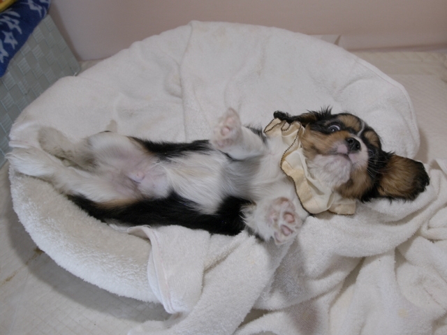 この度はとっても元気な子をありがとうございました。 見学の際は駅まで迎えにきていただき、説明もとても丁寧で安心しました。 空輸で送っていただき、ありがとうございました。 迎えてから一週間が経ち、家にも慣れて、へそ天で寝ています。 トイレトレーニングも、来た時から8割できていて、今ではほとんど失敗しなくなりました。 可愛く元気で、毎日元気に飛び跳ねています。(奈良県 女性)
