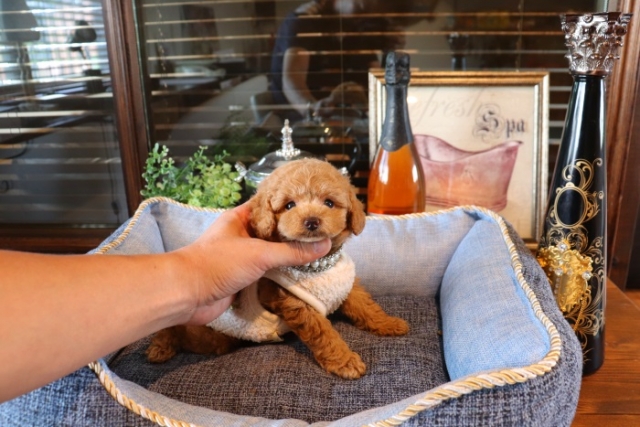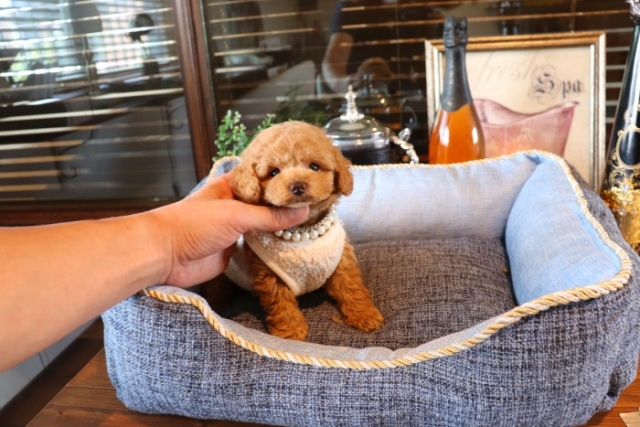 本日、我が家に小さな可愛い女の子のトイプードルがやって来ました。 遠距離という事もあり、暑い時期、飛行機の事なども心配していましだが、家に着いた途端、元気に走り、食欲も旺盛で、今まで大切に育てられてきたのだなぁ、ということがよくわかりました。 連休中にも関わらず、戸田様には、伊丹空港まで連れて来て頂き、こちらの質問にも的確に答えて下さいました。 大変信頼できるブリーダーです。 遠距離で悩まれている方も、安心して新しい家族を迎えられますよ。(兵庫県 男性)