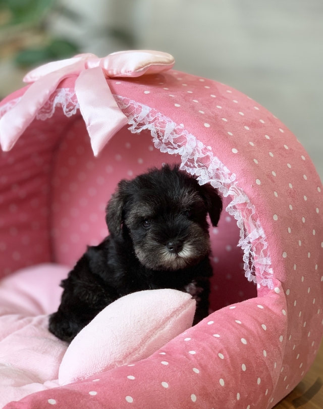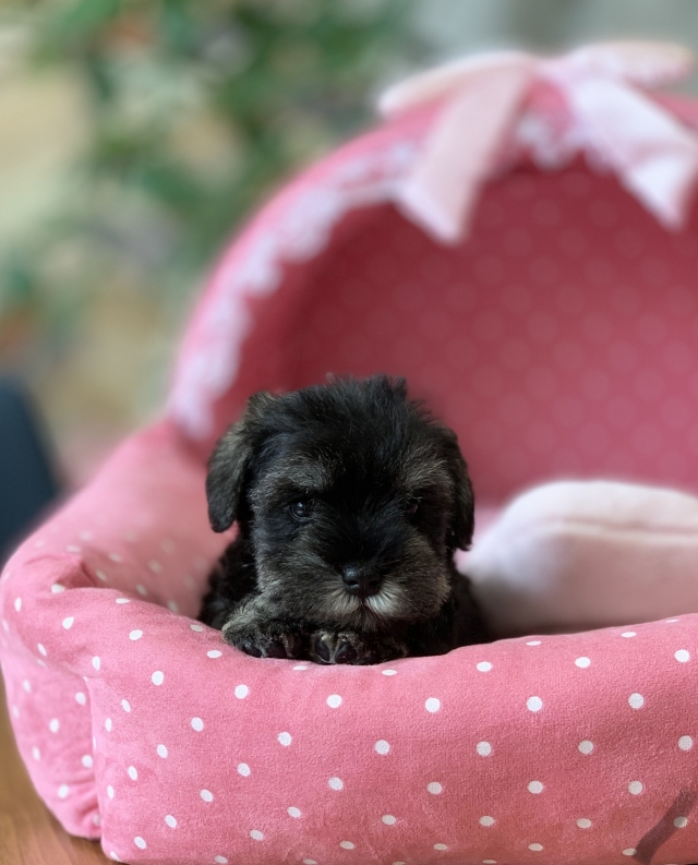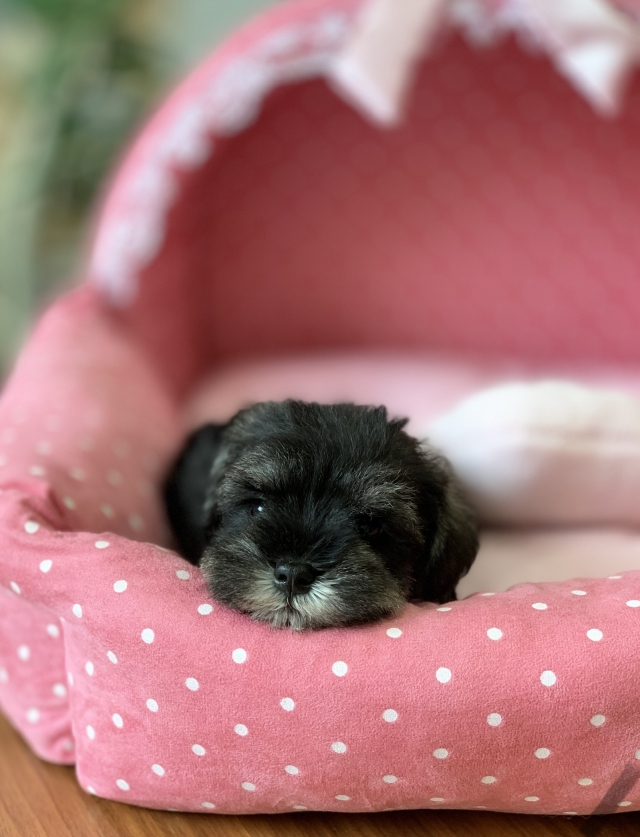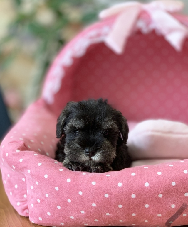 シュナウザーを主力にされているブリーダーさんだと認識しており、ボスちゃんはどうかなあと正直不安でしたがとても可愛く健康的なボスちゃんをいただきました。 掲載されていた写真より実物は想像以上に可愛くて即決し見学させていただいたその日に連れて帰りました。連絡をして、翌日行きますぅって勝手な申し出にも関わらず敏速かつ親切に対応して頂き大満足です。契約に対しても一つ一つ丁寧に説明してくださり、わかりやすかったです。この度は可愛いボスちゃんとのご縁をいただき、本当に有り難うございました。 (大阪府 女性)