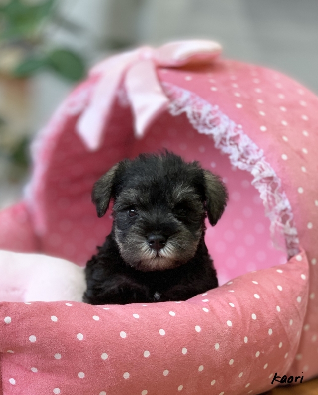 シュナウザーを主力にされているブリーダーさんだと認識しており、ボスちゃんはどうかなあと正直不安でしたがとても可愛く健康的なボスちゃんをいただきました。 掲載されていた写真より実物は想像以上に可愛くて即決し見学させていただいたその日に連れて帰りました。連絡をして、翌日行きますぅって勝手な申し出にも関わらず敏速かつ親切に対応して頂き大満足です。契約に対しても一つ一つ丁寧に説明してくださり、わかりやすかったです。この度は可愛いボスちゃんとのご縁をいただき、本当に有り難うございました。 (大阪府 女性)