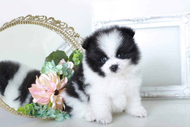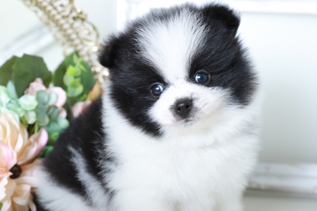 ポメラニアン パーティ (ホワイト ブラック) ♀(女の子) 大阪府【 ブリーダーズ 】