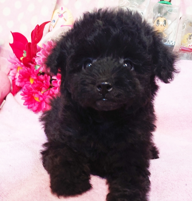 | コメント | お父さん・・ネーロ君 ブラック お母さん・・パンピーちゃん アプリコット たれ目で優しいお顔の女の子です お鼻も短めで幼いお顔だちです 巻きは余り強くなく緩やかなカールです 艶の有る綺麗なブラックです 今の所下の歯がほんの少しだけ出ていますが 生活上何の問題も有りません 生え変わりの時に変わって来る場合も有ります やや短めな足で可愛い体型をしています 明るく元気の良い性格でお腹なでなでされる のが好きな甘えっ子ちゃんです 大人になって3kg~3,5kg前後の 仕上がり予想です 健康診断、1回目のワクチン済みです 生涯家族の一員として可愛がって下さる 方を希望致します |