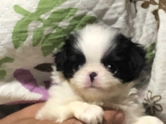 チン(狆) 白黒 ♂(男の子) 岡山県【 ブリーダーズ 】