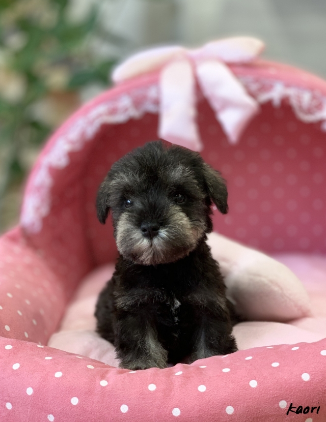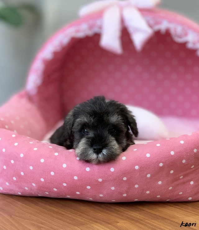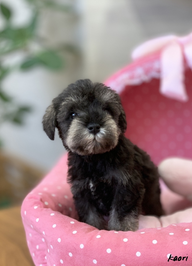 シュナウザーを主力にされているブリーダーさんだと認識しており、ボスちゃんはどうかなあと正直不安でしたがとても可愛く健康的なボスちゃんをいただきました。 掲載されていた写真より実物は想像以上に可愛くて即決し見学させていただいたその日に連れて帰りました。連絡をして、翌日行きますぅって勝手な申し出にも関わらず敏速かつ親切に対応して頂き大満足です。契約に対しても一つ一つ丁寧に説明してくださり、わかりやすかったです。この度は可愛いボスちゃんとのご縁をいただき、本当に有り難うございました。 (大阪府 女性)