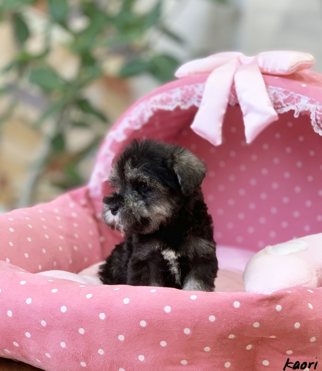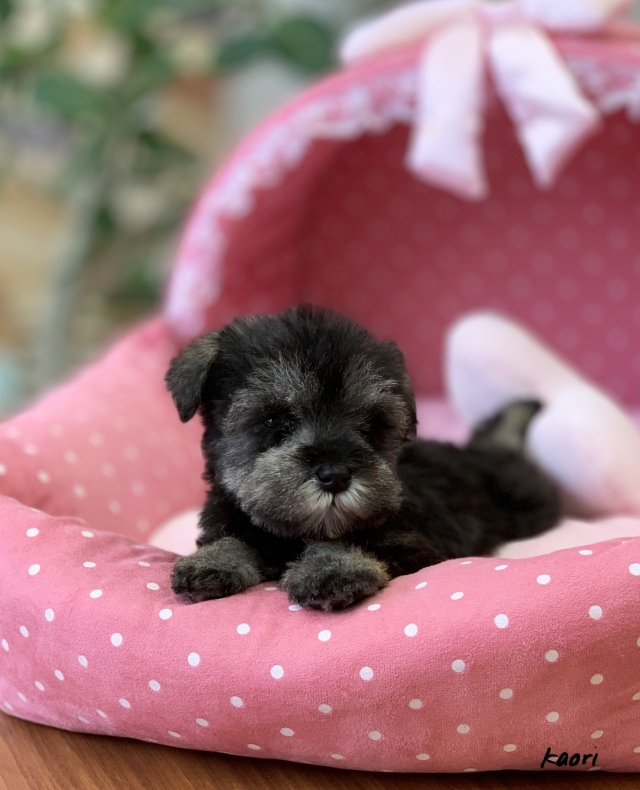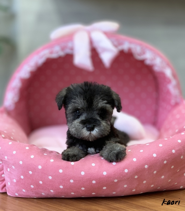 シュナウザーを主力にされているブリーダーさんだと認識しており、ボスちゃんはどうかなあと正直不安でしたがとても可愛く健康的なボスちゃんをいただきました。 掲載されていた写真より実物は想像以上に可愛くて即決し見学させていただいたその日に連れて帰りました。連絡をして、翌日行きますぅって勝手な申し出にも関わらず敏速かつ親切に対応して頂き大満足です。契約に対しても一つ一つ丁寧に説明してくださり、わかりやすかったです。この度は可愛いボスちゃんとのご縁をいただき、本当に有り難うございました。 (大阪府 女性)