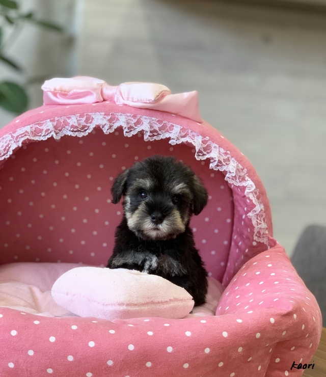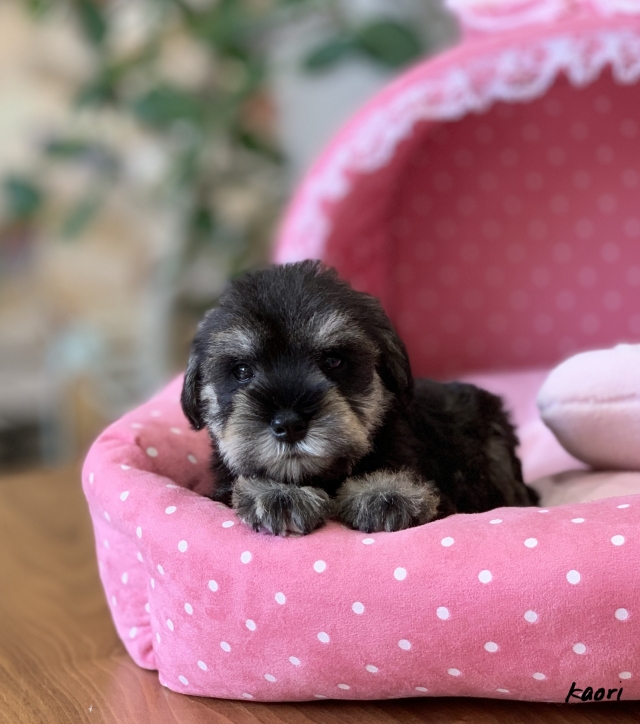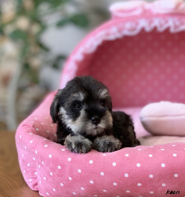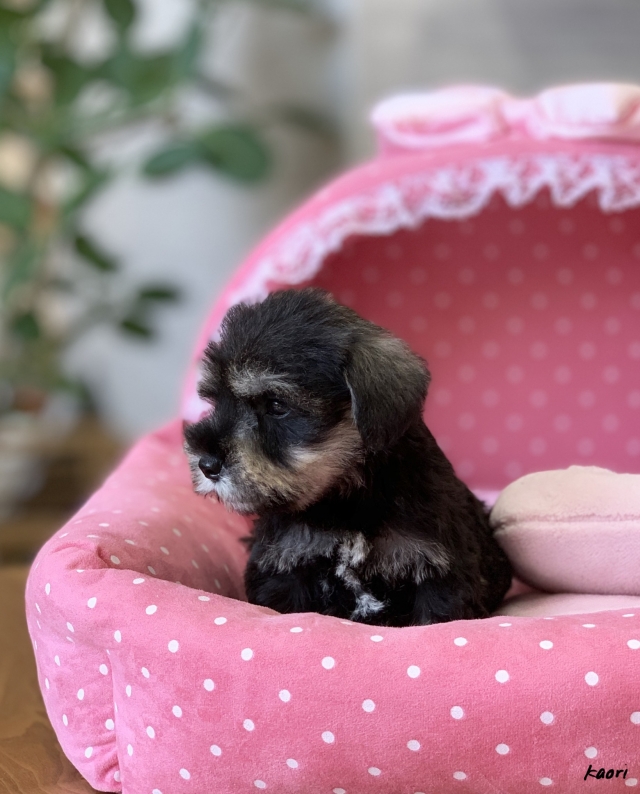 シュナウザーを主力にされているブリーダーさんだと認識しており、ボスちゃんはどうかなあと正直不安でしたがとても可愛く健康的なボスちゃんをいただきました。 掲載されていた写真より実物は想像以上に可愛くて即決し見学させていただいたその日に連れて帰りました。連絡をして、翌日行きますぅって勝手な申し出にも関わらず敏速かつ親切に対応して頂き大満足です。契約に対しても一つ一つ丁寧に説明してくださり、わかりやすかったです。この度は可愛いボスちゃんとのご縁をいただき、本当に有り難うございました。 (大阪府 女性)