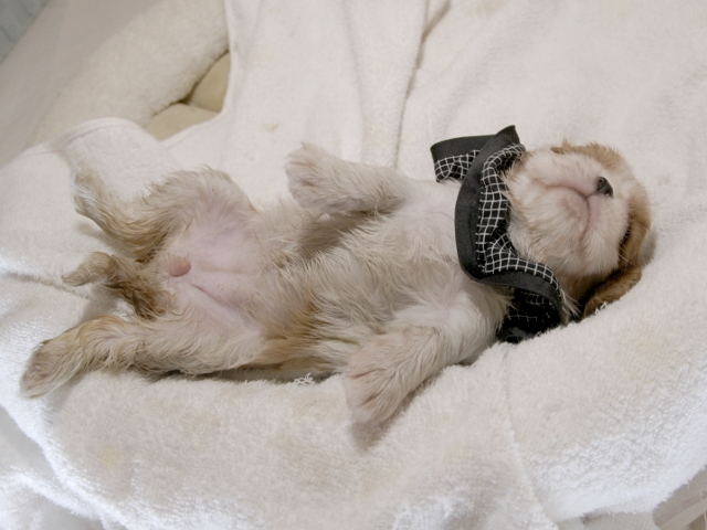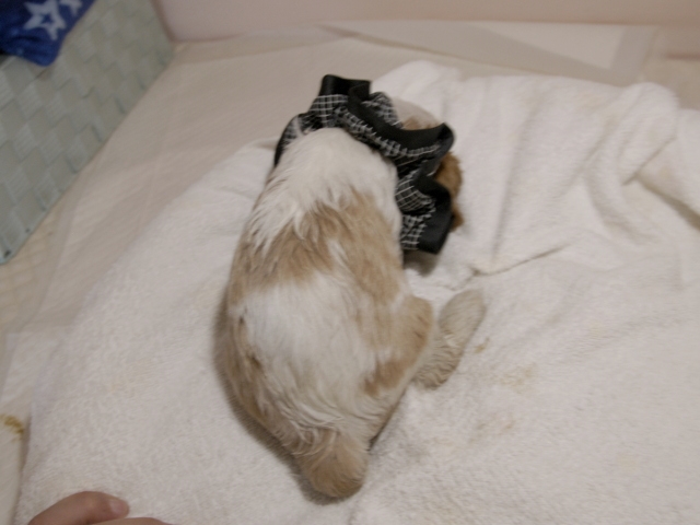 この度はとっても元気な子をありがとうございました。 見学の際は駅まで迎えにきていただき、説明もとても丁寧で安心しました。 空輸で送っていただき、ありがとうございました。 迎えてから一週間が経ち、家にも慣れて、へそ天で寝ています。 トイレトレーニングも、来た時から8割できていて、今ではほとんど失敗しなくなりました。 可愛く元気で、毎日元気に飛び跳ねています。(奈良県 女性)