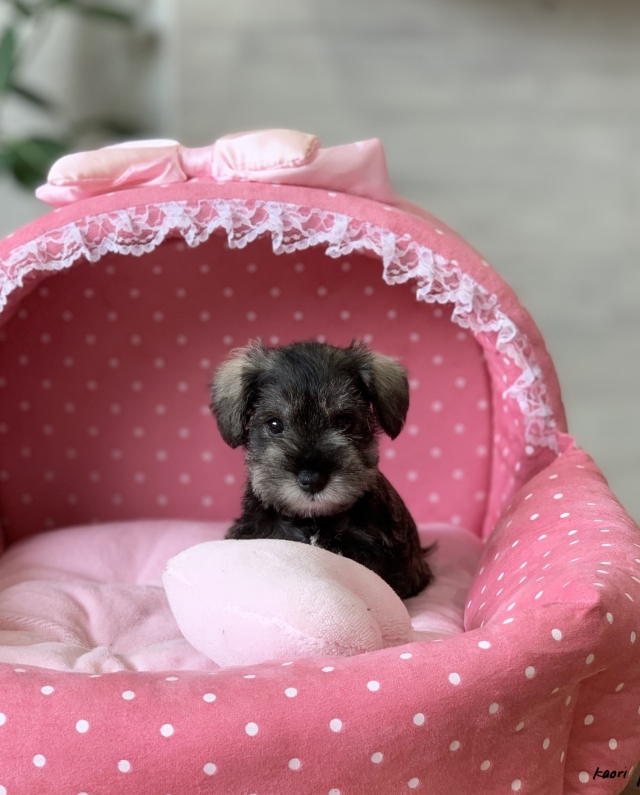 シュナウザーを主力にされているブリーダーさんだと認識しており、ボスちゃんはどうかなあと正直不安でしたがとても可愛く健康的なボスちゃんをいただきました。 掲載されていた写真より実物は想像以上に可愛くて即決し見学させていただいたその日に連れて帰りました。連絡をして、翌日行きますぅって勝手な申し出にも関わらず敏速かつ親切に対応して頂き大満足です。契約に対しても一つ一つ丁寧に説明してくださり、わかりやすかったです。この度は可愛いボスちゃんとのご縁をいただき、本当に有り難うございました。 (大阪府 女性)
