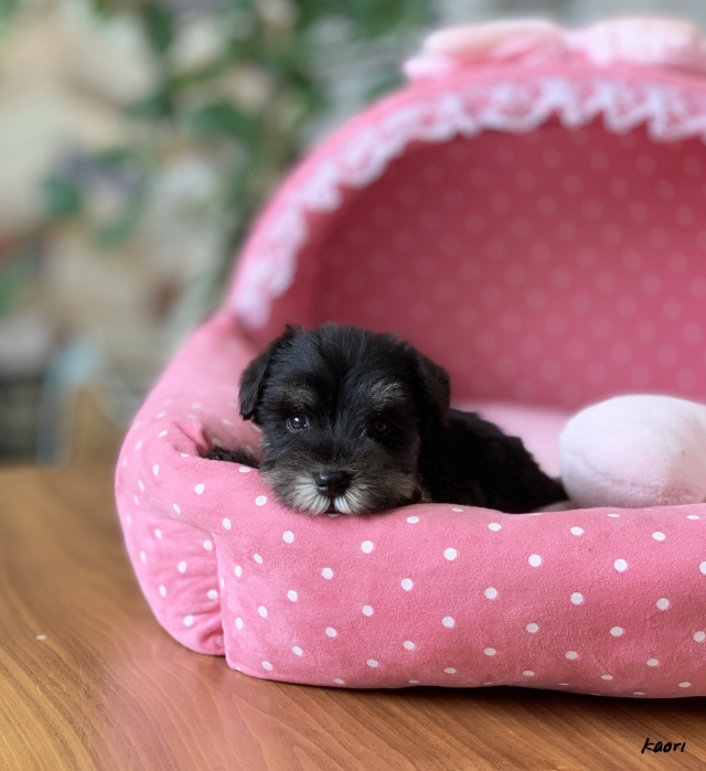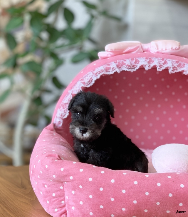 シュナウザーを主力にされているブリーダーさんだと認識しており、ボスちゃんはどうかなあと正直不安でしたがとても可愛く健康的なボスちゃんをいただきました。 掲載されていた写真より実物は想像以上に可愛くて即決し見学させていただいたその日に連れて帰りました。連絡をして、翌日行きますぅって勝手な申し出にも関わらず敏速かつ親切に対応して頂き大満足です。契約に対しても一つ一つ丁寧に説明してくださり、わかりやすかったです。この度は可愛いボスちゃんとのご縁をいただき、本当に有り難うございました。 (大阪府 女性)