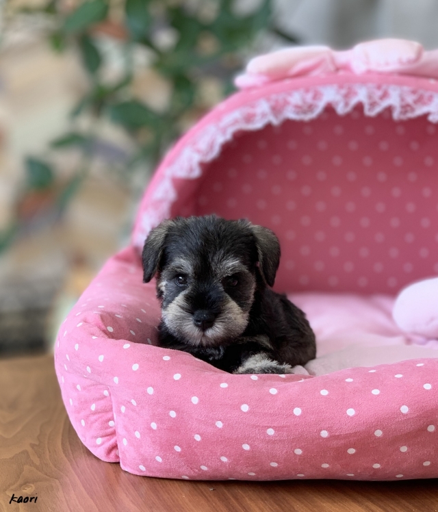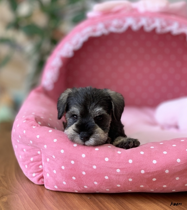 シュナウザーを主力にされているブリーダーさんだと認識しており、ボスちゃんはどうかなあと正直不安でしたがとても可愛く健康的なボスちゃんをいただきました。 掲載されていた写真より実物は想像以上に可愛くて即決し見学させていただいたその日に連れて帰りました。連絡をして、翌日行きますぅって勝手な申し出にも関わらず敏速かつ親切に対応して頂き大満足です。契約に対しても一つ一つ丁寧に説明してくださり、わかりやすかったです。この度は可愛いボスちゃんとのご縁をいただき、本当に有り難うございました。 (大阪府 女性)