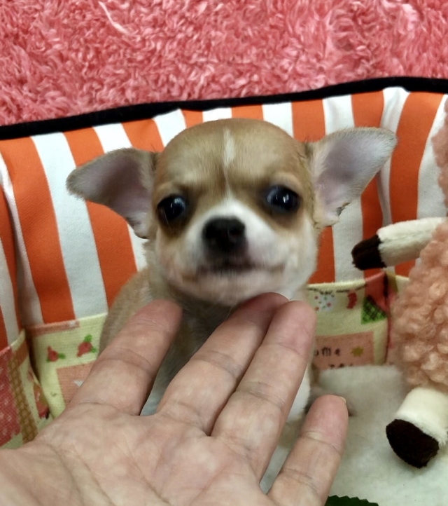 | コメント | 可愛いスムーチーちゃんの特徴 とても元気な、可愛いスムーチーちゃんです。 ※ 7/27. 6種混合ワクチン、接種終えました。 食欲旺盛!コロコロです‼️ 本当に、可愛くて、明るく元気なチワワちゃんです。 ご予約、ご購入ご希望の ご見学、大歓迎です。 ご遠方は、出張にてのお届けも可能です。飛行機、新幹線にてお届けさせて頂きます。 ご縁があります、お優しいパパさん、ママさん、宜しくお願い致します。 癒し系の可愛いスムースチワワちゃんです。 スムースなので、美容もラクラク、お手入れの仕方も、丁寧にお教えさせて頂きます! ご見学されたら、気に入られる事、間違いありません。 ご購入ご希望のお客様、ご予約後、しっかりと飼育のご説明をさせて頂きます。 実物は、もっともっと可愛いです。 ご遠方の方も、ご相談下さい。 安全な方法で、出張又は、代行様にてお届けさせて頂きます! 詳しくは、お問い合わせお願い致します、 当日も、予定がなければご見学お受け出来ます。(朝10時までにご連絡下さい) ご見学と同時に、ご購入ご希望の場合(チワワちゃんとご自宅にお帰り)は、事前にその旨お知らせ下さい。 プレゼントのペットフード、用品、オモチャなどの準備がございます。 お写真よりずっとずっとずっと可愛いですよ。 この子ウチの子、ビビッときましたら、直ぐにお問い合わせ下さい。(ご予約にて、商談中になり、わずかの時間 差で、決まってしまう場合がよくあります。 ワンちゃんと生活されて、癒され幸せになられる事を心から願っていおります ご見学は、自宅、大阪難波にて宜しくお願い致します。 チワワちゃんに癒され、お幸せになられる事を願っております。 ※ クレジットカード又は、 今、人気のPayPay 使えます! 事前に、必ずチャージ必要となります。ご準備、お願い致します。 ★ お問い合わせは、ご家族様、皆様ご了解の上、宜しくお願い致します。 チワワちゃんの飼育のご説明は、ご予約後に、しっかりとさせて頂きます。 |
