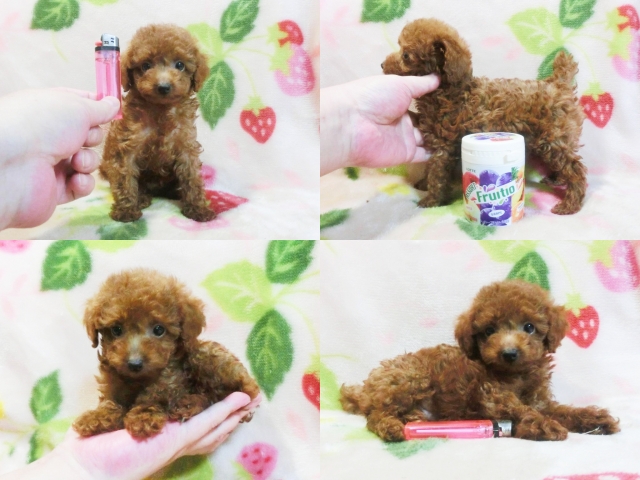 | コメント | ☆☆ティーカップサイズ予想☆☆おっとりのんびり超愛おしい男の仔♪ スタイルも良くまん丸なお顔に短いお鼻円らな瞳でホント可愛い^^ おっとりお顔で見つめられるとキュンッ!!となっちゃいますよ☆ 毛質最高!!しっかりした巻毛に毛量も充分で綺麗なレッドです^^ のんびりとした優しい性格で初めての方にでも飼い易い仔です☆ 小さくてもとっても元気ティーカップ兄弟達と仲良く遊んでます♪ 生後約60日の体重は580g‼成犬予想体重2kg前後だと思います!! 無理に小さく育てたティーカップとは違って本当に元気な健康優良児♪ 身体のバランスが良くしっかりした硬い胴で骨量も多い丈夫な仔☆ 現状噛合せや骨格・関節形成など欠点の心配は一切ありません!! 離乳も済み食欲旺盛でドライでカリカリ!!いつでもお引き渡しOK♪ 素敵なご家族様からのお問い合わせ、お迎えをお待ちしております^^ 【その他諸費用】 5種ワクチン接種費用:6千円【税・画像入証明書付・健康診断込】 ※お迎えの場合で【生体代金】+【ワクチン接種費用】のみです。 ●血統書登録団体:JKC(到着次第郵送※3ヵ月以上要する事もあります) |