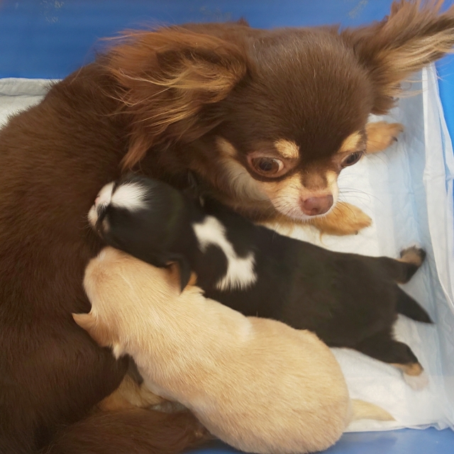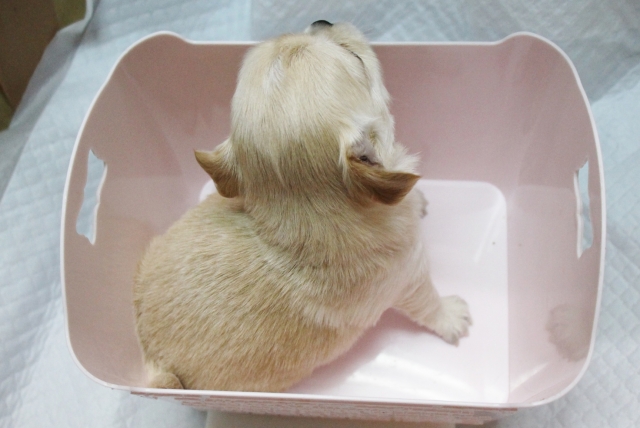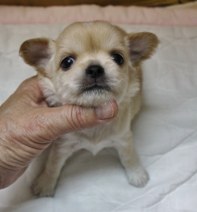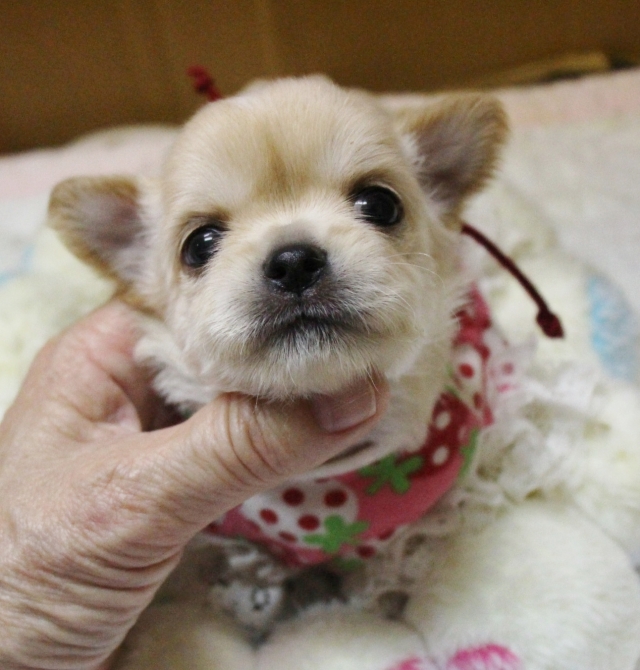 | コメント | パパ クリーム JKCCH直子 2.3kg ママ チョコタン JKCCH孫 2.4kg 色素はバッチリでお鼻は真っ黒です。 ママのおっぱいをしっかり飲んでスクスク育ってます。 8/21獣医さんに健康チェックしてもらって 異常なし!!でした。 現在のところ 欠点はありません。 日々可愛く成長していますので随時画像を更新していきます。 価格は成長により 変動(値上げ)いたします。 但し ご予約後に値上げすることはございません。 お渡しは9月20日以降になります。 土曜日のみになりますが 羽田空港でのお渡し(代行)可能です。 ブリーダー様も不可ではありませんが、3犬種以上のブリーダー様はご遠慮ください。 |