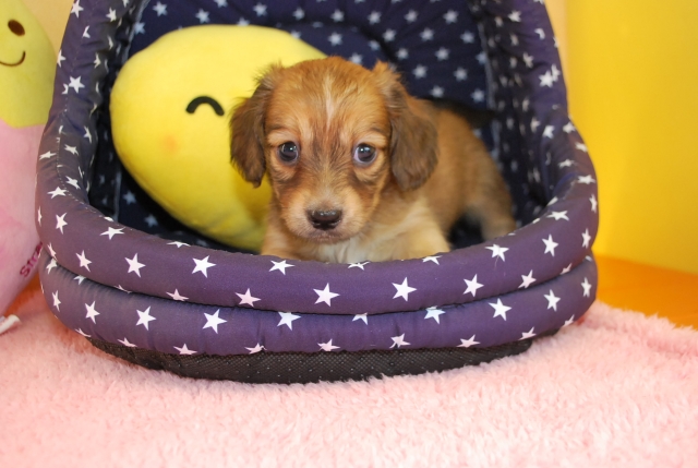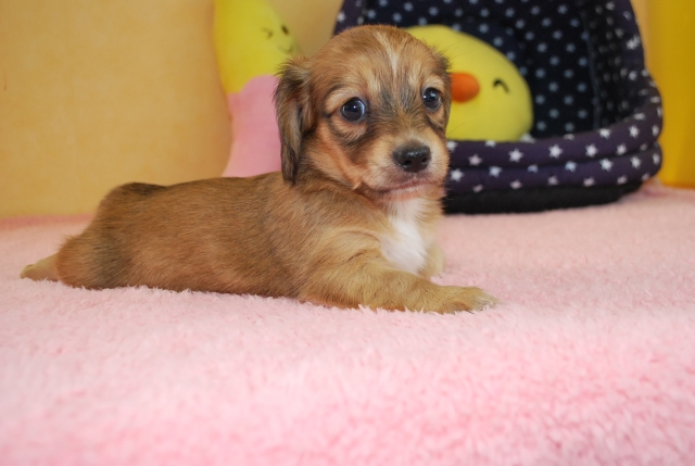 | コメント | ミニチュアダックスフンドのママとチワワのパパから誕生したとってもかわいいチワックスの女の子 9月6日現在の体重は800gです。 お引渡しは9月中旬以降ですがご見学の上、ご予約承ります。 ワクチン1回分(5000円)は別途お願い致します。 |