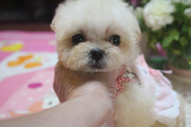 | コメント | 3頭兄妹です。 この女の子は薄いクリームです。 毛の量が多いです 手 足短いタイプです。 9月26日の画像に入れ替えました。 赤ちゃん顔から少し変わってきました。 |