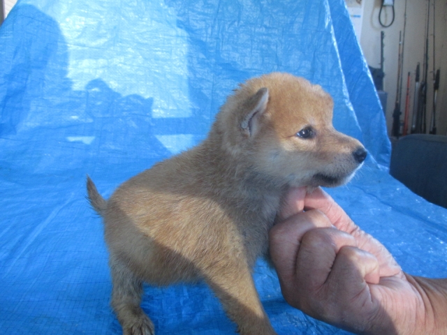 初めて見学で伺った際に、並んで日向ぼっこをしている親犬たちを見て、その時点で高橋さんなら安心だと感じました。事前に希望していたこともあり、母犬と父犬を先に見せていただきましたが、母犬のあまりの人懐こい性格にやられてしまい、実は子犬を見る前に是非譲っていただこうという気持ちになっておりました。 見学の時、譲渡の時といろいろな話をさせてもらい、小さな気付きなども折り込んで教えてもらえるのでやはり柴犬ならこうした専門の方が信頼出来ます。 子犬が我が家に来て二週間が経ち、きょうだいのなかでも一回り小さかったこともあり、やはり成長もやや遅い感じではありますが、母性を刺激された先住犬が頑張って見守ってくれており、予想外ではあるものの家族全員一安心です。 この度は本当にありがとうございました。この子が幸せになれるよう精一杯向き合っていきます。 なお、今後検討されている方への注意事項をひとつだけ書いておきます。問い合わせや見学希望に対しての高橋さんからの返信は電話です。メールでの返信ではありませんので気を付けてください。(宮城県 男性)