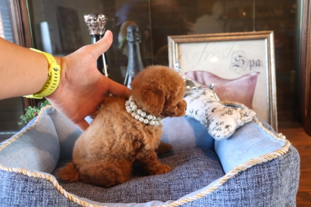 本日、我が家に小さな可愛い女の子のトイプードルがやって来ました。 遠距離という事もあり、暑い時期、飛行機の事なども心配していましだが、家に着いた途端、元気に走り、食欲も旺盛で、今まで大切に育てられてきたのだなぁ、ということがよくわかりました。 連休中にも関わらず、戸田様には、伊丹空港まで連れて来て頂き、こちらの質問にも的確に答えて下さいました。 大変信頼できるブリーダーです。 遠距離で悩まれている方も、安心して新しい家族を迎えられますよ。(兵庫県 男性)