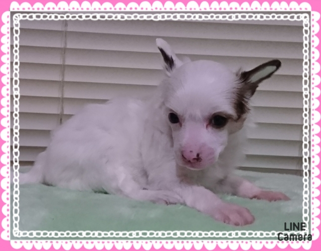 | コメント | 只今、1ヶ月過ぎた所です。 体重720gです~かなり小振りで可愛い 鼻の色素は、徐々に出てきますよ! ボディは、真っ白です。お顔だけに柄があります!耳もですが~ ふわふわモコモコは、これからまだまだです。 パパホワイトパフ ママホワイト&ブラック ヘアレス 代々小振りですので抱っこもすんなり。 マズルも短くてお人形みたいです。 詳しくは、お問い合わせください。 お手入れもアドバイスしますので安心してお迎えできますよ。 オーナー様がコツコツお手入れするのが子犬も安心です。 頑張りましょう。 |