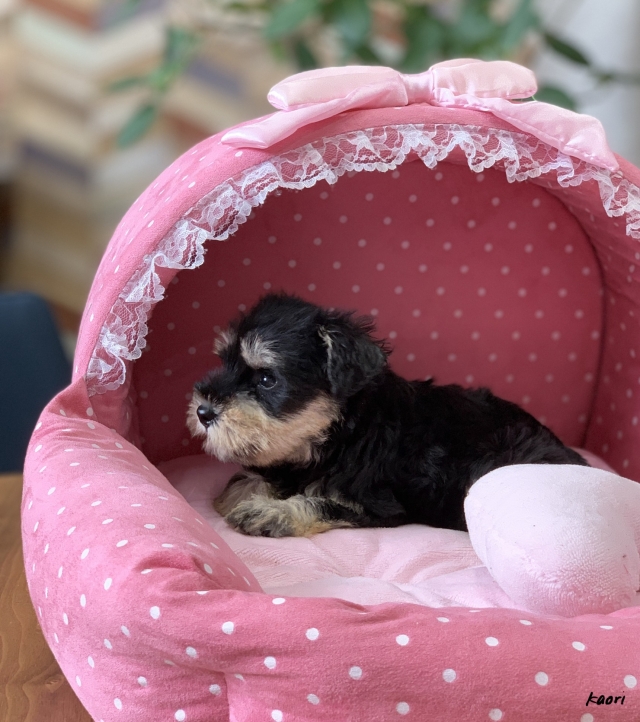 シュナウザーを主力にされているブリーダーさんだと認識しており、ボスちゃんはどうかなあと正直不安でしたがとても可愛く健康的なボスちゃんをいただきました。 掲載されていた写真より実物は想像以上に可愛くて即決し見学させていただいたその日に連れて帰りました。連絡をして、翌日行きますぅって勝手な申し出にも関わらず敏速かつ親切に対応して頂き大満足です。契約に対しても一つ一つ丁寧に説明してくださり、わかりやすかったです。この度は可愛いボスちゃんとのご縁をいただき、本当に有り難うございました。 (大阪府 女性)