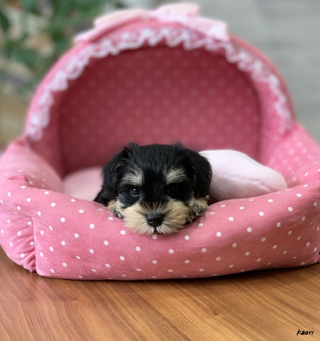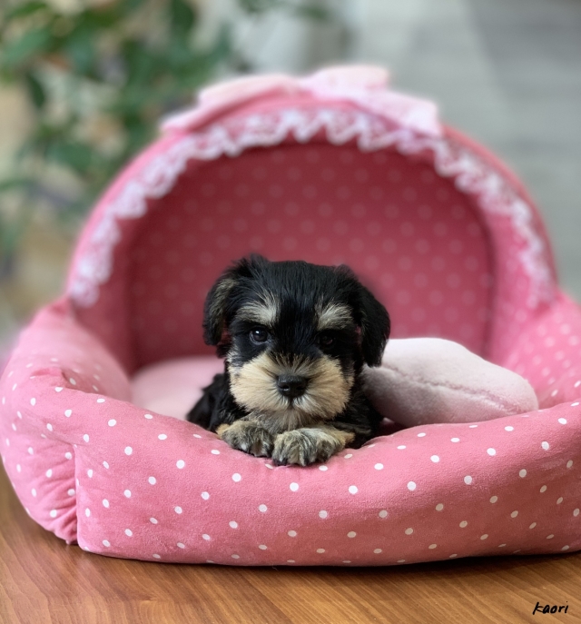 シュナウザーを主力にされているブリーダーさんだと認識しており、ボスちゃんはどうかなあと正直不安でしたがとても可愛く健康的なボスちゃんをいただきました。 掲載されていた写真より実物は想像以上に可愛くて即決し見学させていただいたその日に連れて帰りました。連絡をして、翌日行きますぅって勝手な申し出にも関わらず敏速かつ親切に対応して頂き大満足です。契約に対しても一つ一つ丁寧に説明してくださり、わかりやすかったです。この度は可愛いボスちゃんとのご縁をいただき、本当に有り難うございました。 (大阪府 女性)