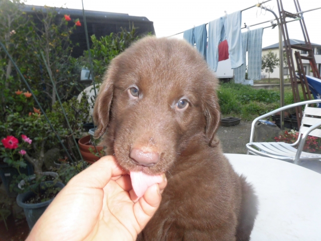 受取りの際子犬が下痢気味の糞をしたのですが、安心の為数日後に引取りに来ればと冷静かつ親切なアドバイス。それでも、と言うと、わざわざ獣医さんに電話して検便の手配をされた上、ご自身で検査に行って下さいました。二頭目の黒ラブですが先代に負けず劣らず元気です。(千葉県 男性)