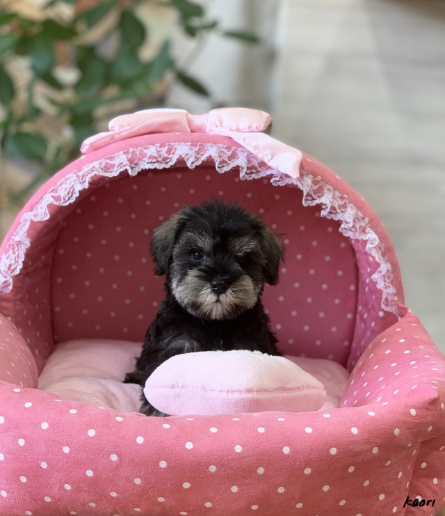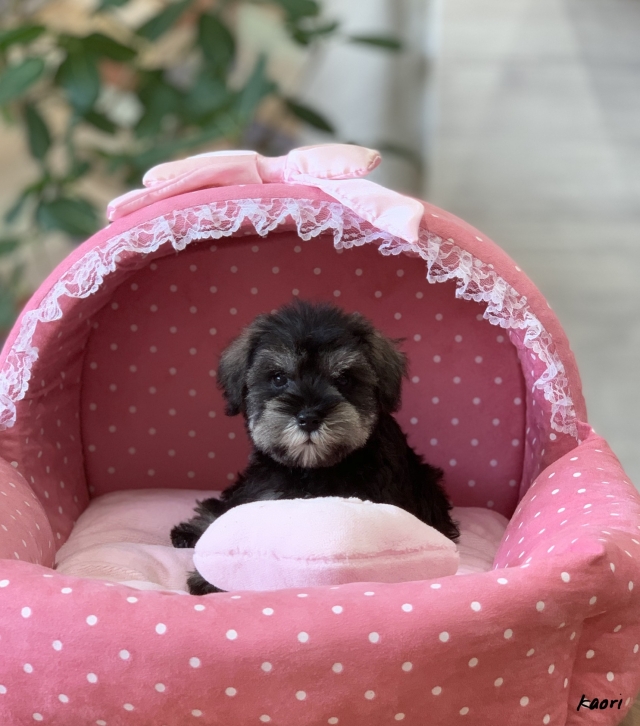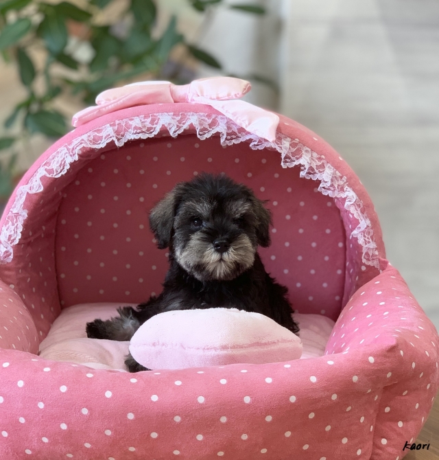 シュナウザーを主力にされているブリーダーさんだと認識しており、ボスちゃんはどうかなあと正直不安でしたがとても可愛く健康的なボスちゃんをいただきました。 掲載されていた写真より実物は想像以上に可愛くて即決し見学させていただいたその日に連れて帰りました。連絡をして、翌日行きますぅって勝手な申し出にも関わらず敏速かつ親切に対応して頂き大満足です。契約に対しても一つ一つ丁寧に説明してくださり、わかりやすかったです。この度は可愛いボスちゃんとのご縁をいただき、本当に有り難うございました。 (大阪府 女性)