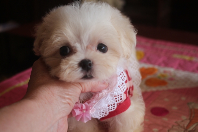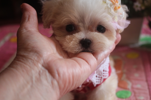 我が家の2匹目に志智ブリーダーさんからお迎えすることになりました。 こちらの都合で最終決定までかなり時間をかけてしまいましたが、お電話でもお忙しい中丁寧に応えていただきました。 写真より可愛く、小さく、愛嬌もあって、いいご縁をいただきました。 我が家の一員として大切にして育てていきますね。 最後までありがとうございました。(福岡県 女性)