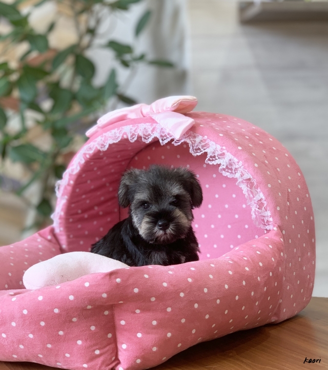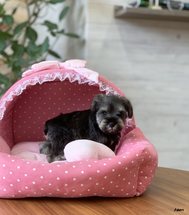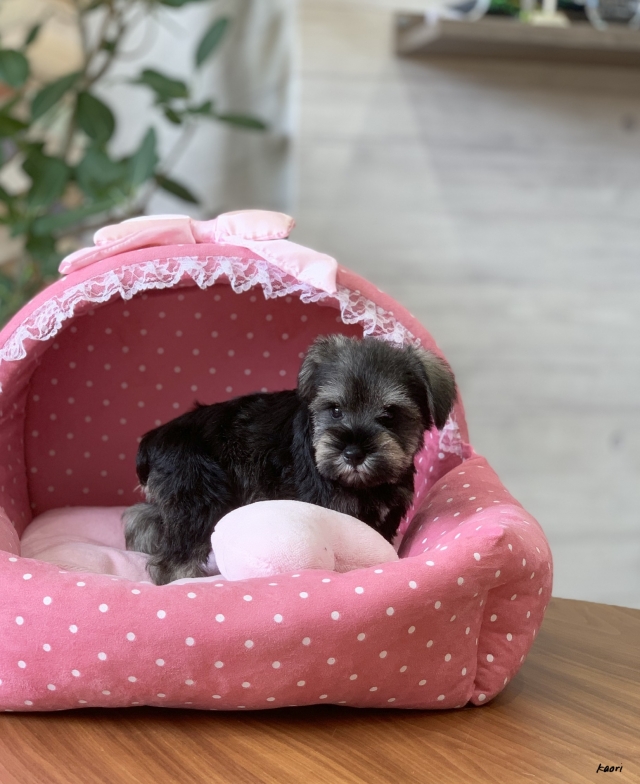 シュナウザーを主力にされているブリーダーさんだと認識しており、ボスちゃんはどうかなあと正直不安でしたがとても可愛く健康的なボスちゃんをいただきました。 掲載されていた写真より実物は想像以上に可愛くて即決し見学させていただいたその日に連れて帰りました。連絡をして、翌日行きますぅって勝手な申し出にも関わらず敏速かつ親切に対応して頂き大満足です。契約に対しても一つ一つ丁寧に説明してくださり、わかりやすかったです。この度は可愛いボスちゃんとのご縁をいただき、本当に有り難うございました。 (大阪府 女性)
