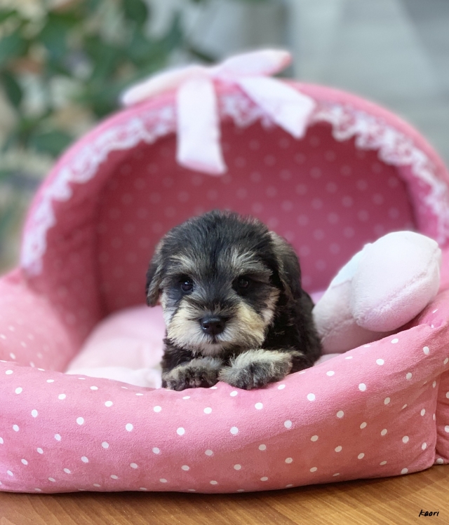 シュナウザーを主力にされているブリーダーさんだと認識しており、ボスちゃんはどうかなあと正直不安でしたがとても可愛く健康的なボスちゃんをいただきました。 掲載されていた写真より実物は想像以上に可愛くて即決し見学させていただいたその日に連れて帰りました。連絡をして、翌日行きますぅって勝手な申し出にも関わらず敏速かつ親切に対応して頂き大満足です。契約に対しても一つ一つ丁寧に説明してくださり、わかりやすかったです。この度は可愛いボスちゃんとのご縁をいただき、本当に有り難うございました。 (大阪府 女性)