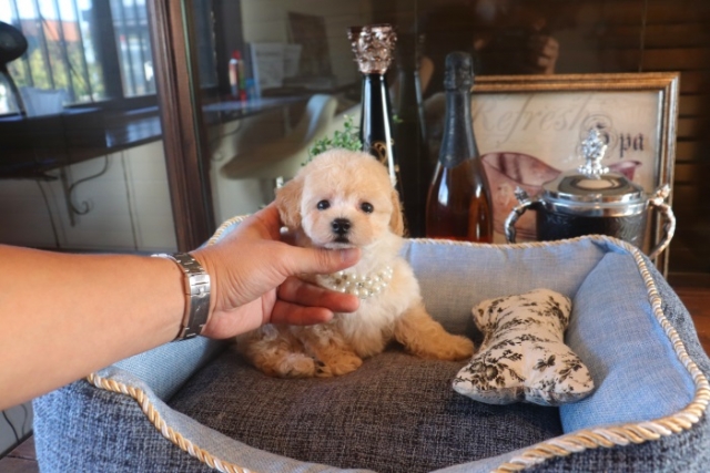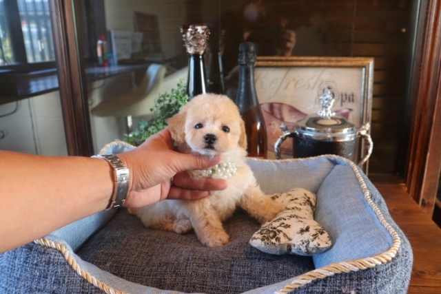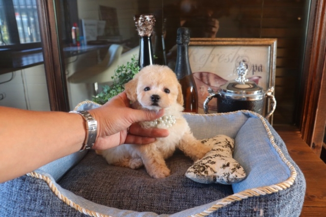| コメント | 父犬1.6㎏ 母2.6㎏ タイニーサイズの可愛い女の子の紹介です 今人気のクリーム色の小さな女の子です この生後でこの可愛さ♡タイニーサイズ予想ではございますが 小さめのタイニーサイズになるとても胴が詰まった子ですよ 欧米のブリーディング同様、親や兄弟と社会期を過ごさせることで 人間と暮らした時にスムーズに暮らせるようにしております。 親犬達も家族として朝7時からドックランで遊び、全室冷暖房完備の部屋で過ごし、専門のスタッフや専門学校の方々と協力し合いながら 衛生管理に努めております。 犬舎の特徴としましては、東京や神奈川近郊の為マンションのお客様が8割を占めます。その為小さな1キロから2.8キロまでに収まるように、 母犬を2.8キロまでと決めてブリーディングをしている為、後で極端に大きくなる子はいません。 瞳の丸く大きなところやマズル(鼻先)が短いもの特徴で、父犬、母犬、全て私が全国の可愛いトイプードルを一頭、一頭厳選して親犬としてブリーディングした子犬のみを掲載しております。 こだわりとしては、お客様がお迎えされた後、その子がTV出演、雑誌やカレンダーのモデルとして活躍の場が増え我が家を忘れないでいてもらいたい為、 本気でこだわりを持って常にトイプードルを飼うなら此処だと皆様全員に思われる犬舎でありたいと思います。 ありがたいことに今では、雑誌やTV出演、カレンダーなど多くの出身トイプードルちゃんたちが可愛く撮影されお客様からも喜びの声を頂いております |