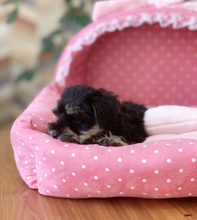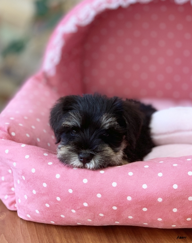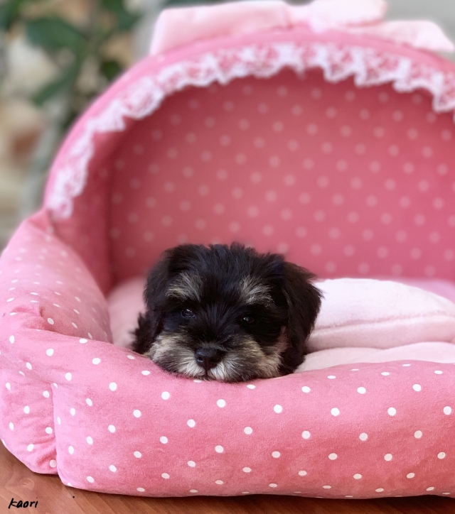 シュナウザーを主力にされているブリーダーさんだと認識しており、ボスちゃんはどうかなあと正直不安でしたがとても可愛く健康的なボスちゃんをいただきました。 掲載されていた写真より実物は想像以上に可愛くて即決し見学させていただいたその日に連れて帰りました。連絡をして、翌日行きますぅって勝手な申し出にも関わらず敏速かつ親切に対応して頂き大満足です。契約に対しても一つ一つ丁寧に説明してくださり、わかりやすかったです。この度は可愛いボスちゃんとのご縁をいただき、本当に有り難うございました。 (大阪府 女性)