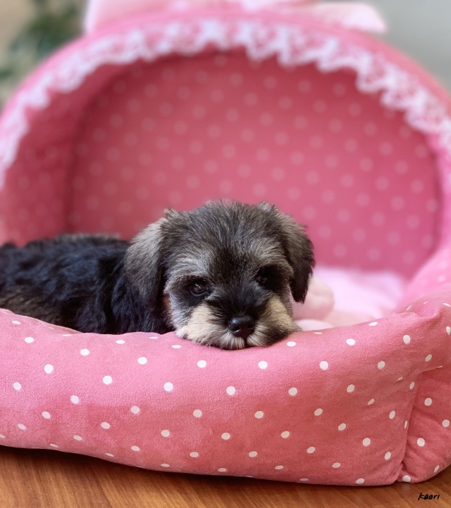 シュナウザーを主力にされているブリーダーさんだと認識しており、ボスちゃんはどうかなあと正直不安でしたがとても可愛く健康的なボスちゃんをいただきました。 掲載されていた写真より実物は想像以上に可愛くて即決し見学させていただいたその日に連れて帰りました。連絡をして、翌日行きますぅって勝手な申し出にも関わらず敏速かつ親切に対応して頂き大満足です。契約に対しても一つ一つ丁寧に説明してくださり、わかりやすかったです。この度は可愛いボスちゃんとのご縁をいただき、本当に有り難うございました。 (大阪府 女性)