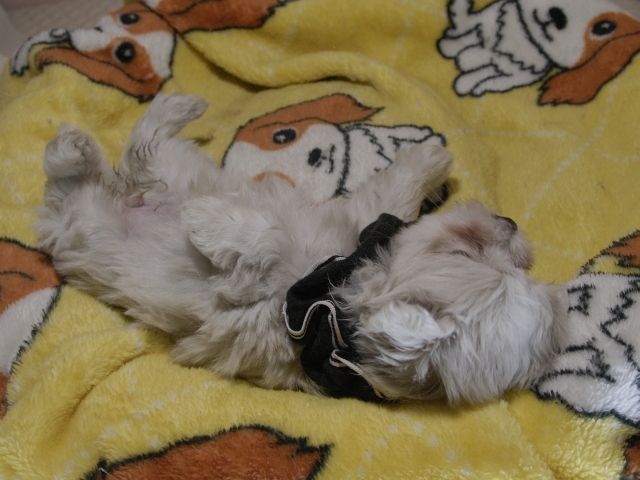 この度はとっても元気な子をありがとうございました。 見学の際は駅まで迎えにきていただき、説明もとても丁寧で安心しました。 空輸で送っていただき、ありがとうございました。 迎えてから一週間が経ち、家にも慣れて、へそ天で寝ています。 トイレトレーニングも、来た時から8割できていて、今ではほとんど失敗しなくなりました。 可愛く元気で、毎日元気に飛び跳ねています。(奈良県 女性)