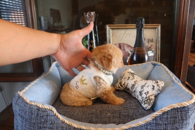 | コメント | 父犬1.6㎏ 母2.6㎏ タイニーサイズの可愛い男の子の紹介です 今人気のクリーム色の性格も大人しい子です 毛量も抜群の女の子です♪ こちらでしつけを万全にしてのお渡しですので初めてのお客様でもスムーズにお迎え可能です 。 欧米のブリーディング同様、親や兄弟と社会期を過ごさせることで 人間と暮らした時にスムーズに暮らせるようにしております。 親犬達も家族として朝7時からドックランで遊び、全室冷暖房完備の部屋で過ごし、専門のスタッフや専門学校の方々と協力し合いながら 衛生管理に努めております。 犬舎の特徴としましては、東京や神奈川近郊の為マンションのお客様が8割を占めます。その為小さな1キロから2.8キロまでに収まるように、 母犬を2.8キロまでと決めてブリーディングをしている為、後で極端に大きくなる子はいません。 瞳の丸く大きなところやマズル(鼻先)が短いもの特徴で、父犬、母犬、全て私が全国の可愛いトイプードルを一頭、一頭厳選して親犬としてブリーディングした子犬のみを掲載しております。 こだわりとしては、お客様がお迎えされた後、その子がTV出演、雑誌やカレンダーのモデルとして活躍の場が増え我が家を忘れないでいてもらいたい為、 本気でこだわりを持って常にトイプードルを飼うなら此処だと皆様全員に思われる犬舎でありたいと思います。 ありがたいことに今では、雑誌やTV出演、カレンダーなど多くの出身トイプードルちゃんたちが可愛く撮影されお客様からも喜びの声を頂いております |