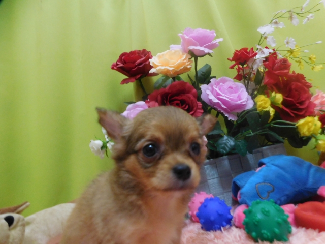 5月6日に13年1ヶ月買ったチワワが亡くなり、49日が過ぎてネットで前のチワワと面影が似ていたので見学させて頂きましたところ親切に説明していただき、とても元気な子を分けていただきました。(大阪府 男性)