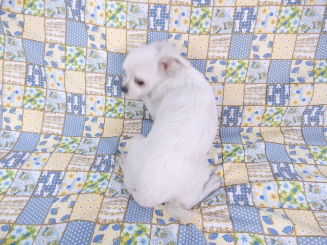 名古屋からお迎えしました。チワワちゃんを亡くし途方に暮れていた中ミックスの子迎えました。帰りの新幹線でもお利口でした。お迎えまで1ヵ月ありましたがしっかりと配慮の行き届いた対応して頂きました。預かっているあいだに社会性を学んだみたいで初日から一通り出来ました。歴史のあるブリーダ-ならではの安心です。待っているあいだも写真や動画送って下さり名前で読んで下さり初日から自分の名前わかっているかのようです。とても健康で生きがよく愛嬌最大限です。ミックスなのでどのように育つかわからないところが育てがいがあります。ご飯ももりもり食べてうんちもしっかりしています。こんな可愛く健康な仔犬をお譲り下さり感謝致します。こんなに丁寧で細部まで至れり尽くせりですみません。安心して共に暮らしていけます。この度は本当にありがとうございました。(愛知県 男性)