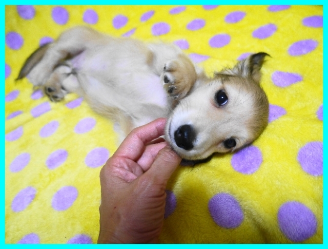 亡くなった愛犬達と同じ、 ワイヤーダックスの子犬を探していましたが、珍しい犬種という事もあり、 なかなか出会えませんでした。 諦めかけた頃、こちらのサイトで可愛い子犬を見つけ、思いきってメールをさせて頂きました。 遠藤ブリーダー様の迅速丁寧な対応で、 お陰様で無事に子犬を迎える事が出来ました。 本当にありがとうございました。 ブリーダーズ様にも感謝致します。 (北海道 女性)