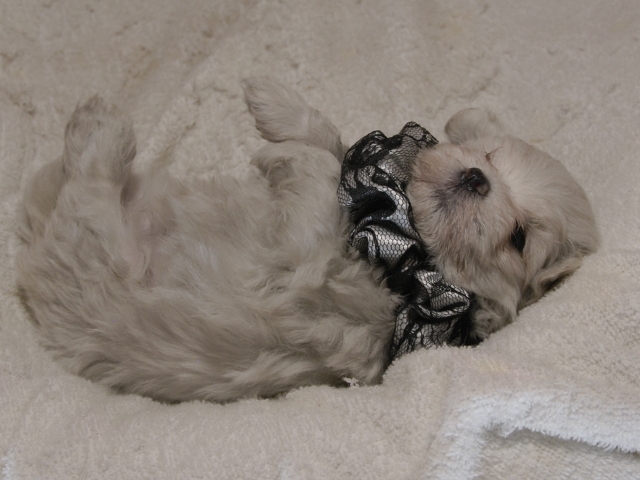 この度はとっても元気な子をありがとうございました。 見学の際は駅まで迎えにきていただき、説明もとても丁寧で安心しました。 空輸で送っていただき、ありがとうございました。 迎えてから一週間が経ち、家にも慣れて、へそ天で寝ています。 トイレトレーニングも、来た時から8割できていて、今ではほとんど失敗しなくなりました。 可愛く元気で、毎日元気に飛び跳ねています。(奈良県 女性)