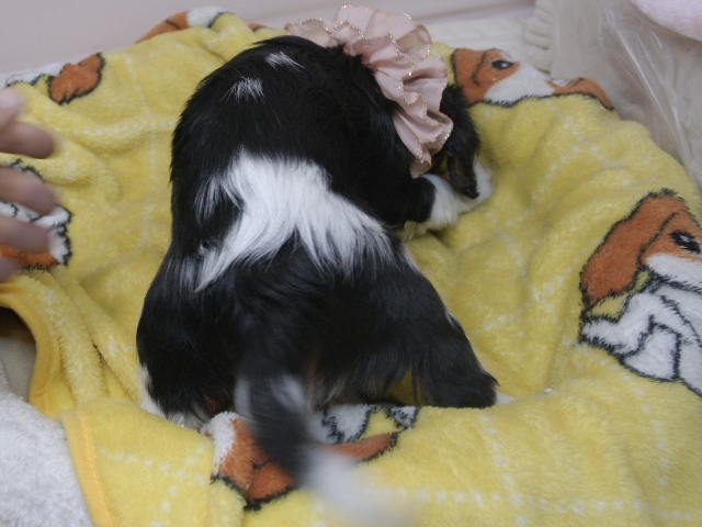 | コメント | お父さんはJKCチャンピオンの家斎君、お母さんはチャンピオン直子ブレアーちゃんから生まれたキュートな女の子です。(桃リボンちゃん) 健康状態は、問題有りません。 すくすく育っています。 特典として、平日割引(2万円)見学並びに契約をして頂いた方。 土日祝日割引(1万円)見学並びに契約をして頂いた方、ジャンケンで勝ったら値引きします。 |