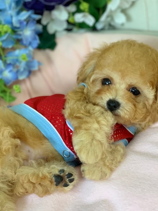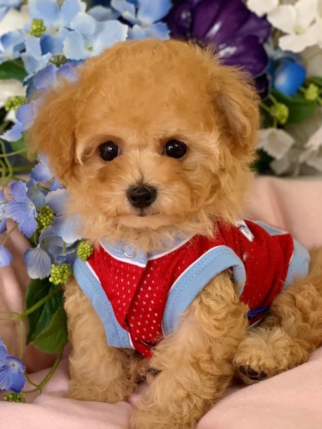 | コメント | ドアーフで優しいカラーのアプリコットの 男の子です 短いあしで遊ぶ姿は最高に可愛いです お母さんもティーカップなので 小さく収まるど思います とてもフレンドリーで初めて飼うかた お子さんがいる方などおススメです 是非見学にいらして下さい |