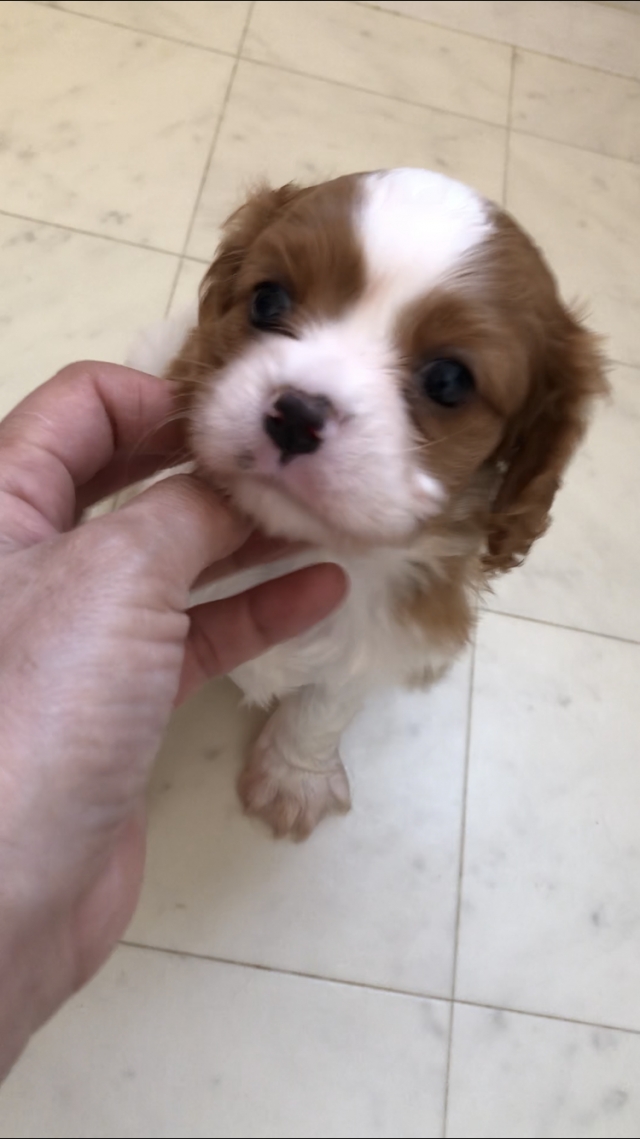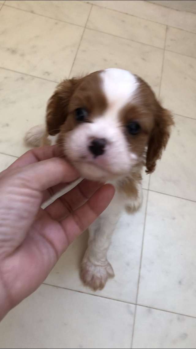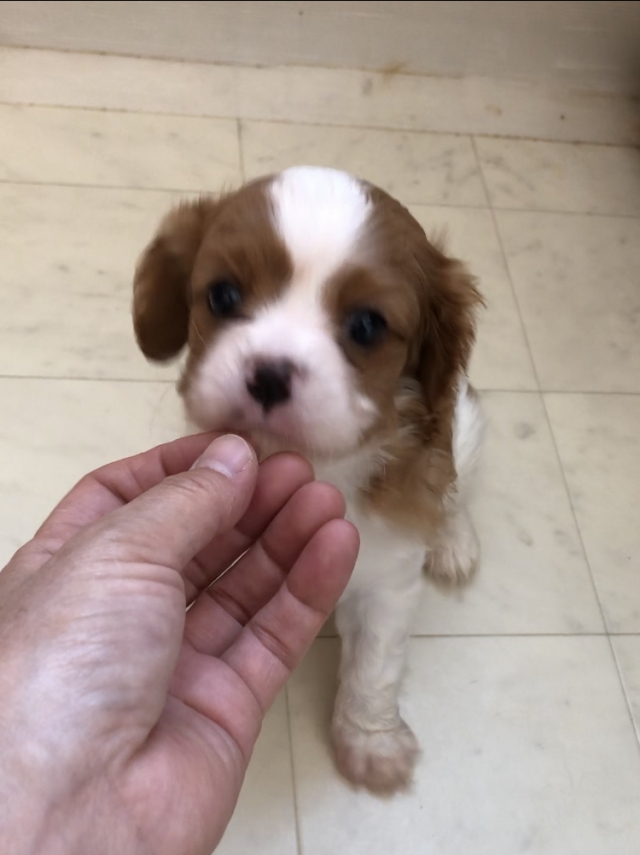 | コメント | とっても可愛い女の子が産まれました〜♪ 真ん丸などんぐりお目々がチャームポイントで女の子みたいに可愛い子です。 性格は明るくて尻尾フリフリでとっても人懐こいです。 遊んでいるときはずっと尻尾フリフリしてるほどです。 白と茶の柄のバランスも大変良く、お顔の模様も左右対象でとてもキレイです。 キャバリアはお口の周りや手足にシミやソバカスのある子が多いのですが、私自身がシミやソバカスが苦手ですので、シミやソバカスのある血統は代々排除していますので、大人になってもキレイなお顔をしています。 またダブーとされている交配(ブレンハイム×ルビー、トライ×ブラックタン)は一切行っておりません。 パパ 英国系ブレンハイム ママ 英国系ブレンハイム 本場の英国の血統が濃い子達です。 当方のInstagramには動画も掲載しています。 こちらにも動画が載せられるようですが、youtubeに登録していないため載せられず申し訳ありません。 お引渡しは10月初め頃から可能です。 お問い合わせはどのような事でもお気軽にどうぞ。 是非ご見学にいらしてくださいね。 動物愛護の観点から65歳以上の方のみのご家庭へもお譲りしておりませんのでご了承ください。 |