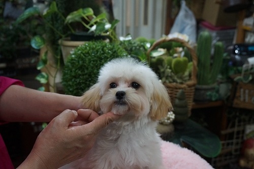 今回、村田ブリーダー様より可愛い子犬を譲っていただきました。引き渡しの時に丁寧に色々教えてもらいましたが、初めての子犬でわからない事だらけ。引き渡し当日の夕方にはもうSOSの電話をしてしまいました。同じ市内で信頼出来るブリーダー様に出会えて幸運でした。これからも宜しくお願いします。(京都府 女性)