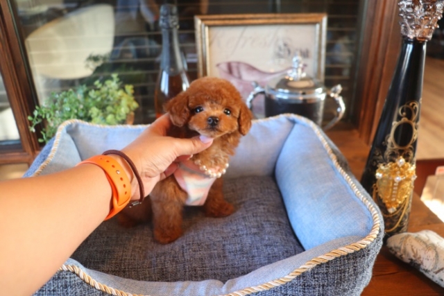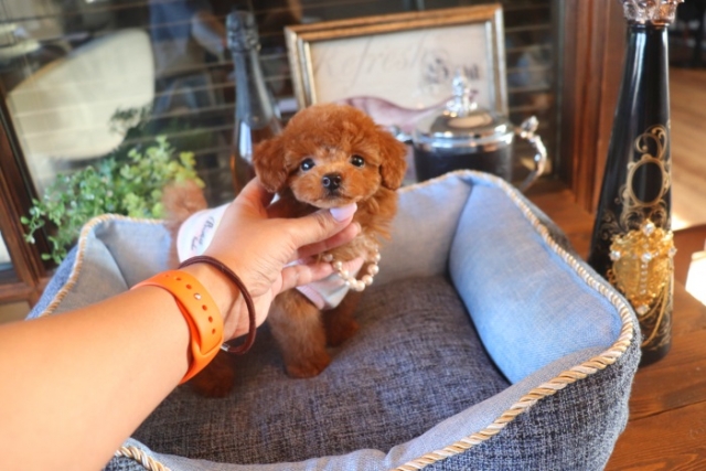| コメント | 父犬1.6㎏ 母2.5㎏ 小ぶりタイニーサイズの可愛い女の子の紹介です 定番人気のレッドの女の子です。 性格はおっとりした子ですので、しつけもしやすいです(*´ω`*) うるうる見つめてくる、可愛い女の子です♥ 。 欧米のブリーディング同様、親や兄弟と社会期を過ごさせることで 人間と暮らした時にスムーズに暮らせるようにしております。 親犬達も家族として朝7時からドックランで遊び、全室冷暖房完備の部屋で過ごし、専門のスタッフや専門学校の方々と協力し合いながら 衛生管理に努めております。 犬舎の特徴としましては、東京や神奈川近郊の為マンションのお客様が8割を占めます。その為小さな1キロから2.8キロまでに収まるように、 母犬を2.8キロまでと決めてブリーディングをしている為、後で極端に大きくなる子はいません。 瞳の丸く大きなところやマズル(鼻先)が短いもの特徴で、父犬、母犬、全て私が全国の可愛いトイプードルを一頭、一頭厳選して親犬としてブリーディングした子犬のみを掲載しております。 こだわりとしては、お客様がお迎えされた後、その子がTV出演、雑誌やカレンダーのモデルとして活躍の場が増え我が家を忘れないでいてもらいたい為、 本気でこだわりを持って常にトイプードルを飼うなら此処だと皆様全員に思われる犬舎でありたいと思います。 ありがたいことに今では、雑誌やTV出演、カレンダーなど多くの出身トイプードルちゃんたちが可愛く撮影されお客様からも喜びの声を頂いております |