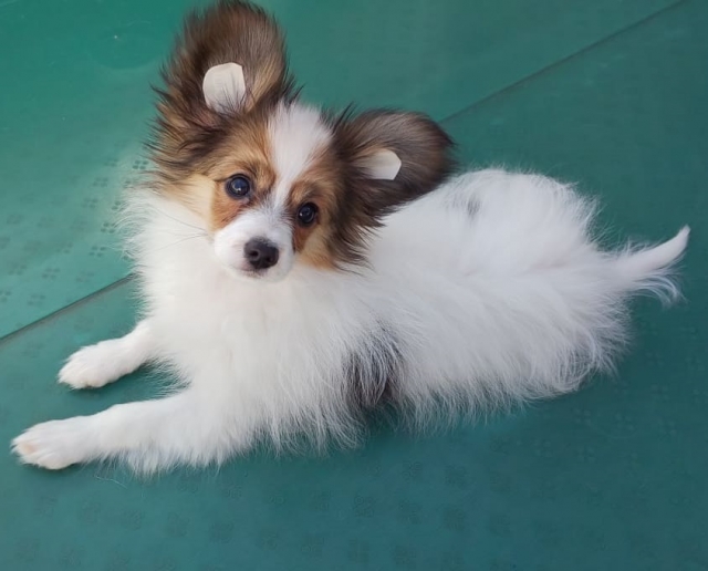パピヨン ホワイト&ブラウン ♂(男の子) 埼玉県【 ブリーダーズ 】