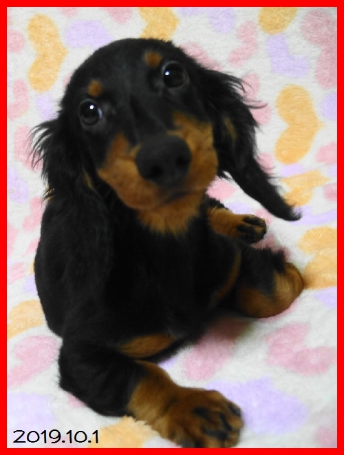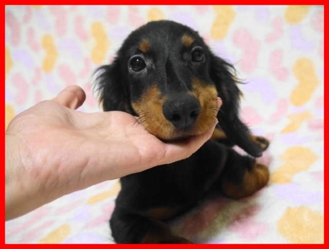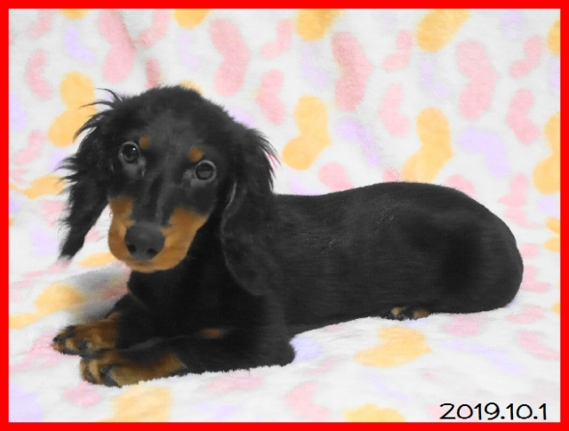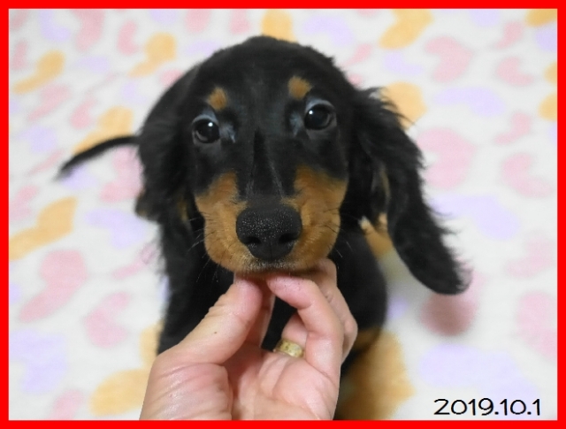 | コメント | パパはJKCチャンピオンの銀次君。 ママはJKCチャンピオン直娘のキャメロンちゃん。 子犬ちゃんはブラック&タンの男の子です。 欠点なども無くすくすくと順調に育っています。 お盆明けころからお引き渡しが可能です。 事前にご見学していただけますので、お問い合わせをお待ちしております。 一度スタンダードロングダックスを飼ったことがある方は絶対に次に飼う子もスタンダード以外は考えられないと皆様おっしゃる位に魅力的な、人間の言葉を理解するとても良い家庭犬です。 性格も良くて、抱き枕サイズの甘えん坊です。成犬時の体重は男の子でだいたい9キロから14キロくらいです。 ワクチン接種と健康診断実施済みですので、ご見学の際にそのままお迎えいただけます。 PS 当方はキャッシュレスポイント還元事業店舗のため、10月以降の精算時にクレジットカード決済の場合は後日5%分のポイントが政府より還元されます。 ぜひご利用ください。 |