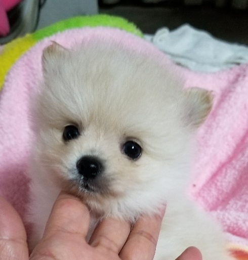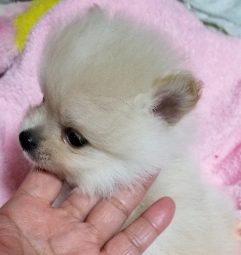 白のポメラニアンを本日お迎え致しました。生後40日前後で子犬を拝見させて頂いた時にブリーダー様の犬愛を知り、迎えるまでの20日間、安心して過ごせました! 途中で、ムービを送って頂き、成長過程を実感できた事、感謝しています。アドバイスも、丁寧に教えて頂きました。(東京都 男性)